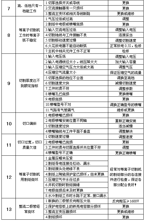 CUT系列等離子切割機(jī)常見故障發(fā)生原因及排除方法